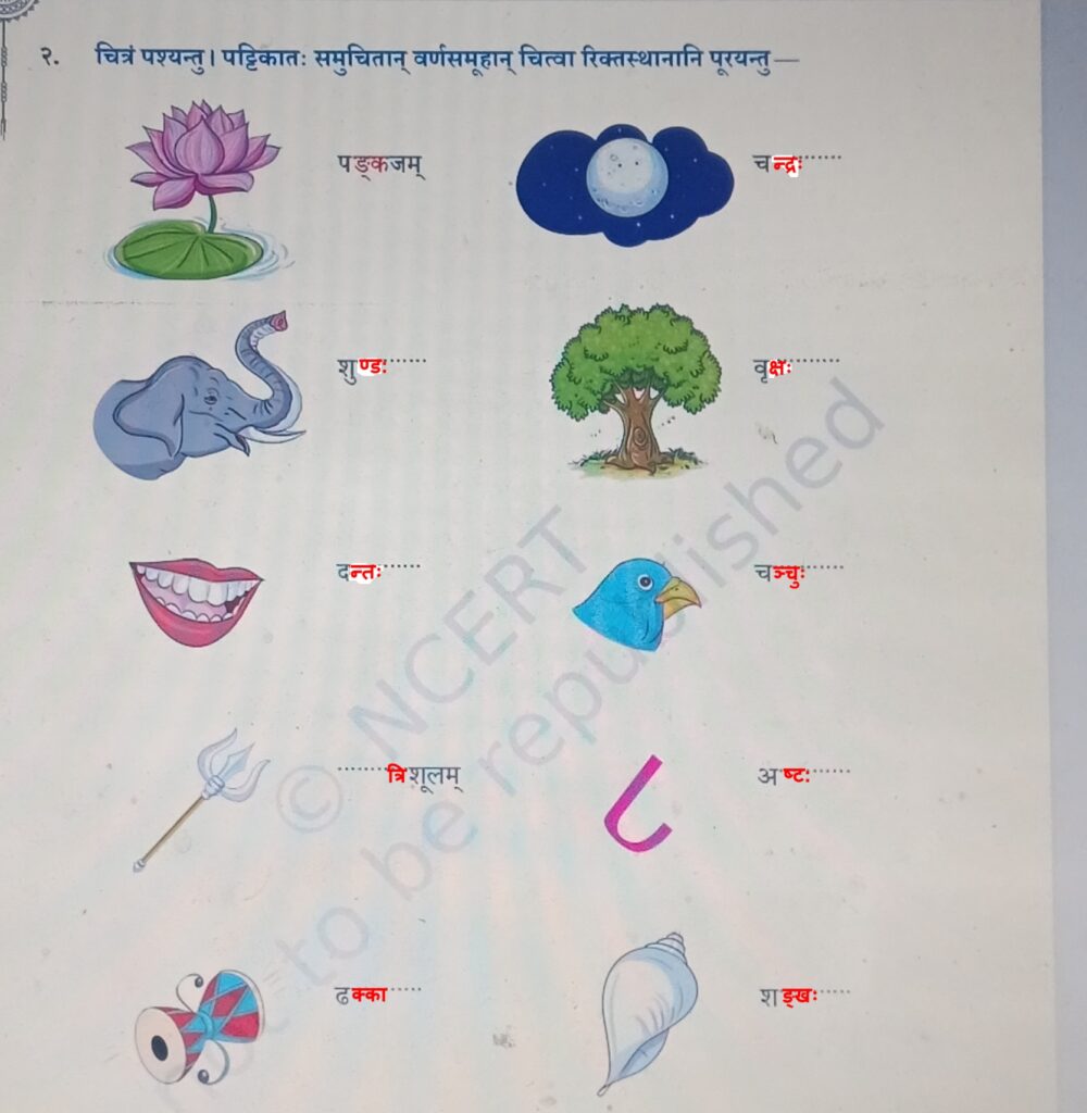 पट्टिका – क्का, त्रि, ण्डः, ञ्चुः, क्षः, ङ्क, ङखः, न्ताः, न्द्र, ष्ट